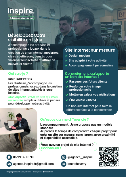 Réalisation d’un flyer de communication pour Ion Etcheverry, spécialisé dans la création de sites internet pour les artisans et professionnels locaux.